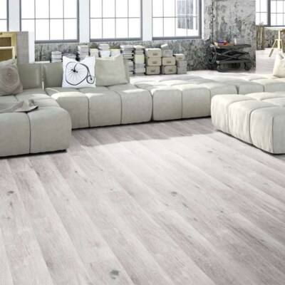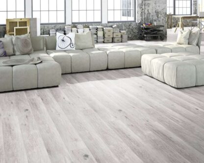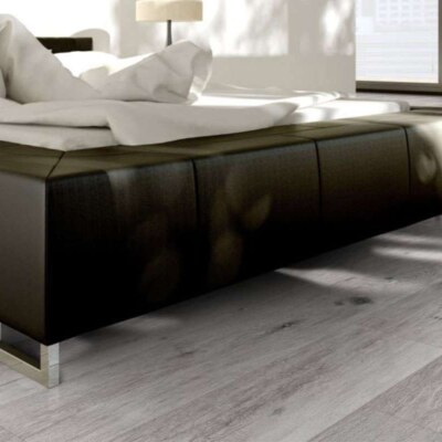 A pale grey tone with soft grain and gentle knot variation that reduces visual stimulation and allows light to diffuse evenly across the surface. Low contrast pattern that brightens a room without drawing attention to the floor plane.